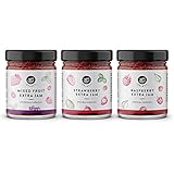 | Marca Amazon – Happy Belly Select Colección de bayas (frutas del bosque, fresa, frambuesa), 75 % mermelada, 3 x 180 g